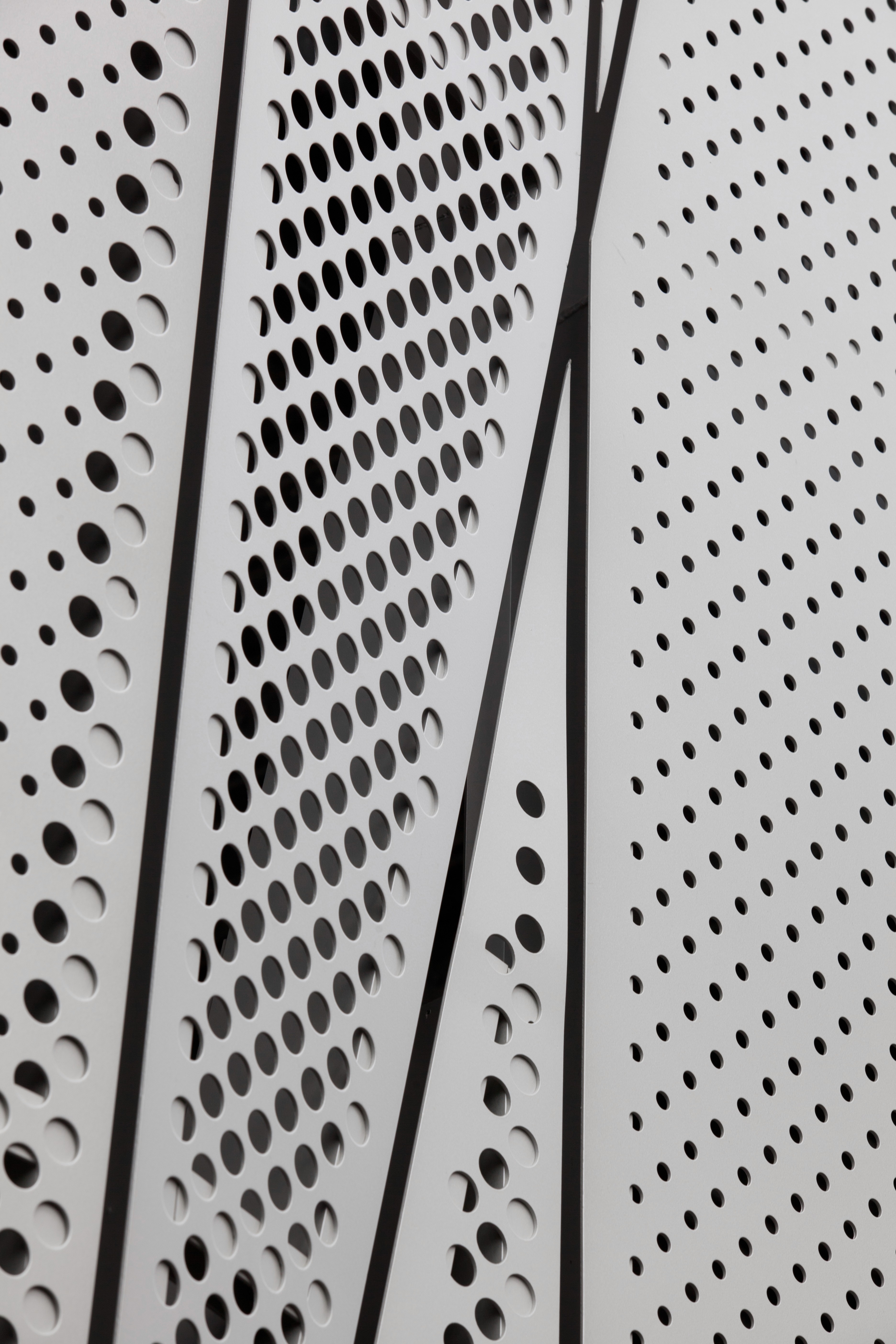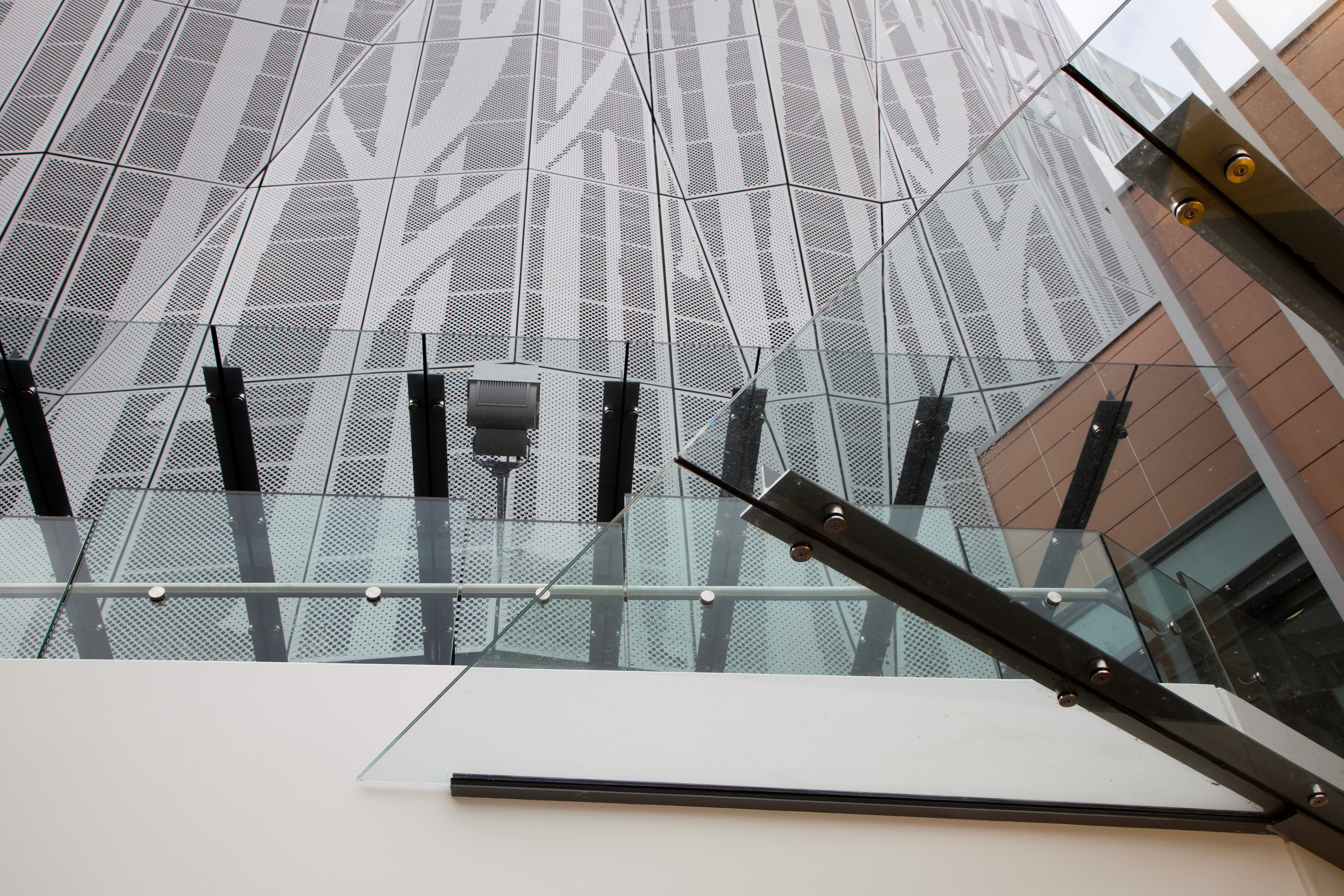 The project features a bespoke perforated aluminium screen cladding system, designed for both functional ventilation and architectural expression. A 135mm unitised curtain wall system was installed to enclose key circulation areas, complemented by 100mm shopfront glazing and 50mm commercial doors.