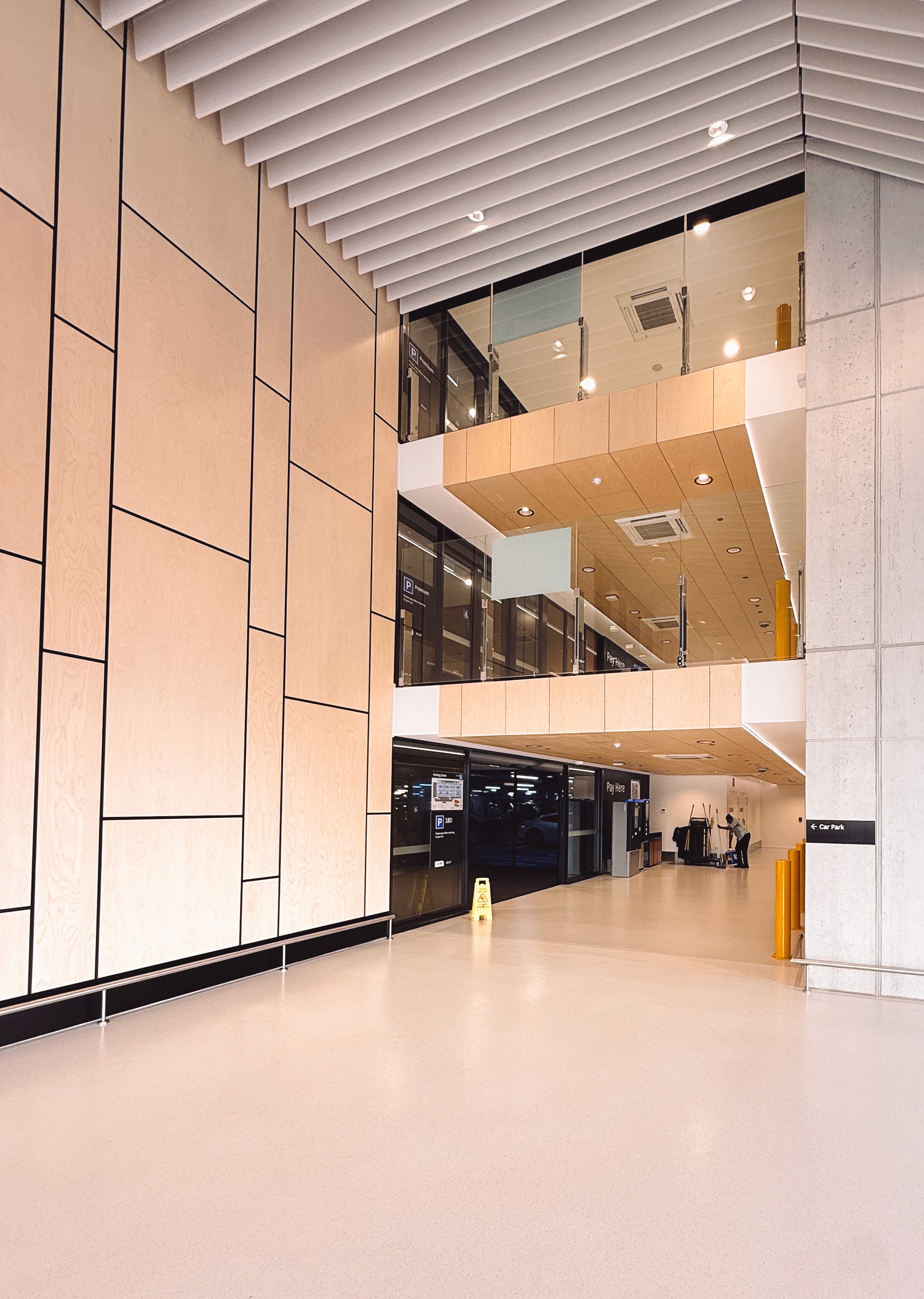 The Auckland Airport Transport Hub is a four-level integrated facility combining car parking, a transit concourse, and a 5-Star Green Star-rated office block, connected to the international terminal via a skybridge. Handling over 10,000 vehicle movements daily, it forms a key part of Auckland Airport’s front-door experience.
