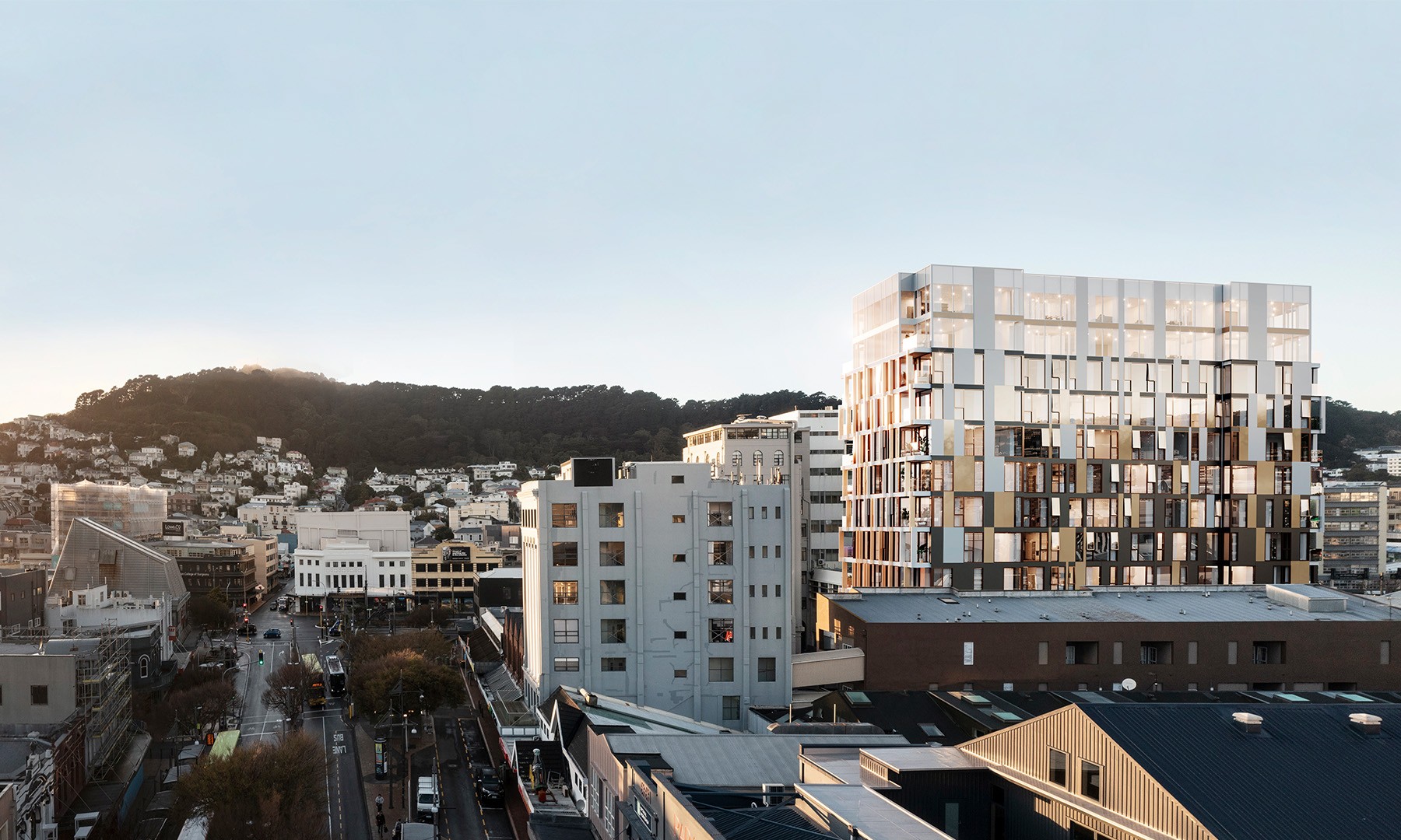 KFI is delivering the façade package for Hyde Lane Apartments, a 13-storey mixed-use development in the heart of Wellington. The building includes 150 residential units, premium wellness amenities, and activated laneway retail linking to Courtenay Place.